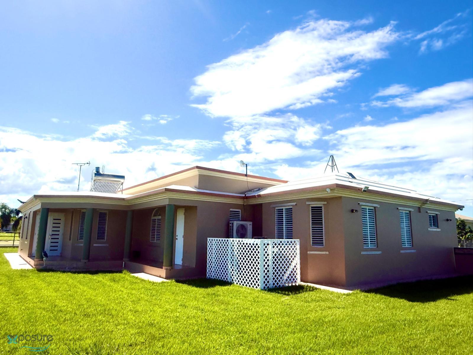 Have you always dreamed of living the coastal lifestyle in western Puerto Rico? Welcome to your new home in Camaseyes, Aguadilla! Imagine waking up just minutes from the legendary Crash Boat and Wilderness beaches every day, where world-class surfing and spectacular sunsets are part of your daily routine. Known as "La Villa del Ojo de Agua," Aguadilla offers unparalleled natural beauty and a vibrant community. It also has excellent restaurants with varied cuisine, a golf course, the convenient Rafael Hernández Airport, and the modern Aguadilla Mall. Now, imagine experiencing all this from your own residence. This exceptional 3,060-square-foot property in the exclusive Estancias de Villa Azul community combines architectural elegance with modern functionality to create spaces designed for enjoying every moment. Here, you'll find the perfect balance of neighborhood serenity and immediate access to paradise-like beaches, aquatic adventures, and local and international cuisine. Aguadilla is one of the most beautiful destinations on the island, and this property offers it all. You must see it! Live where others only come on vacation! Interior layout: Four spacious bedrooms with built-in closets and elegant mirrored doors. •Three bedrooms measure 12' x 11'. • Master bedroom measuring 14' x 14' •Three full bathrooms, including one accessible for people with motor disabilities. •Spacious foyer that welcomes you in style •Spacious living room ideal for entertaining. • Main dining room and additional dining room • Large family room for the whole family •Kitchen with spacious cedar cabinets •Interior laundry room with closet •Double garage •Outdoor spaces: •Beautiful backyard •Spacious balcony •Back porch is perfect for enjoying the tropical climate Security: •Complete video surveillance system with eight cameras and a monitor •Hurricane-resistant, French-style security windows •Electric pedestal with a voltage regulator and equipment protection Energy efficiency and comfort: •Solar water heater for energy savings •High ceilings allow for greater natural light and excellent air circulation. Strategic location •Five minutes from Rafael Hernández Airport •Five minutes from PR-107 •Five minutes from the Punta Borinquen Golf Club •Five to six minutes from Punta Borinquen Beach •Seven to eight minutes from Crash Boat Beach •Eight to nine minutes from Peña Blanca Beach •Nine to ten minutes from Wilderness Beach •12 minutes from Colón Park •12 minutes from Breakwater Beach) •Four minutes from Desecheo Restaurant •Five minutes from Mona Restaurant •10–12 minutes from Sal de Mar Restaurant & Rooftop •15 minutes from ARTe - Aguadilla Rooftop Experience •Fifteen minutes from Messalina •Ten minutes from the Aguadilla Mall •Minutes from elementary schools and colleges in Aguadilla •Minutes from prestigious universities in Aguadilla, including the Interamerican University of Aguadilla, the Aguadilla Regional College (CORA), others..