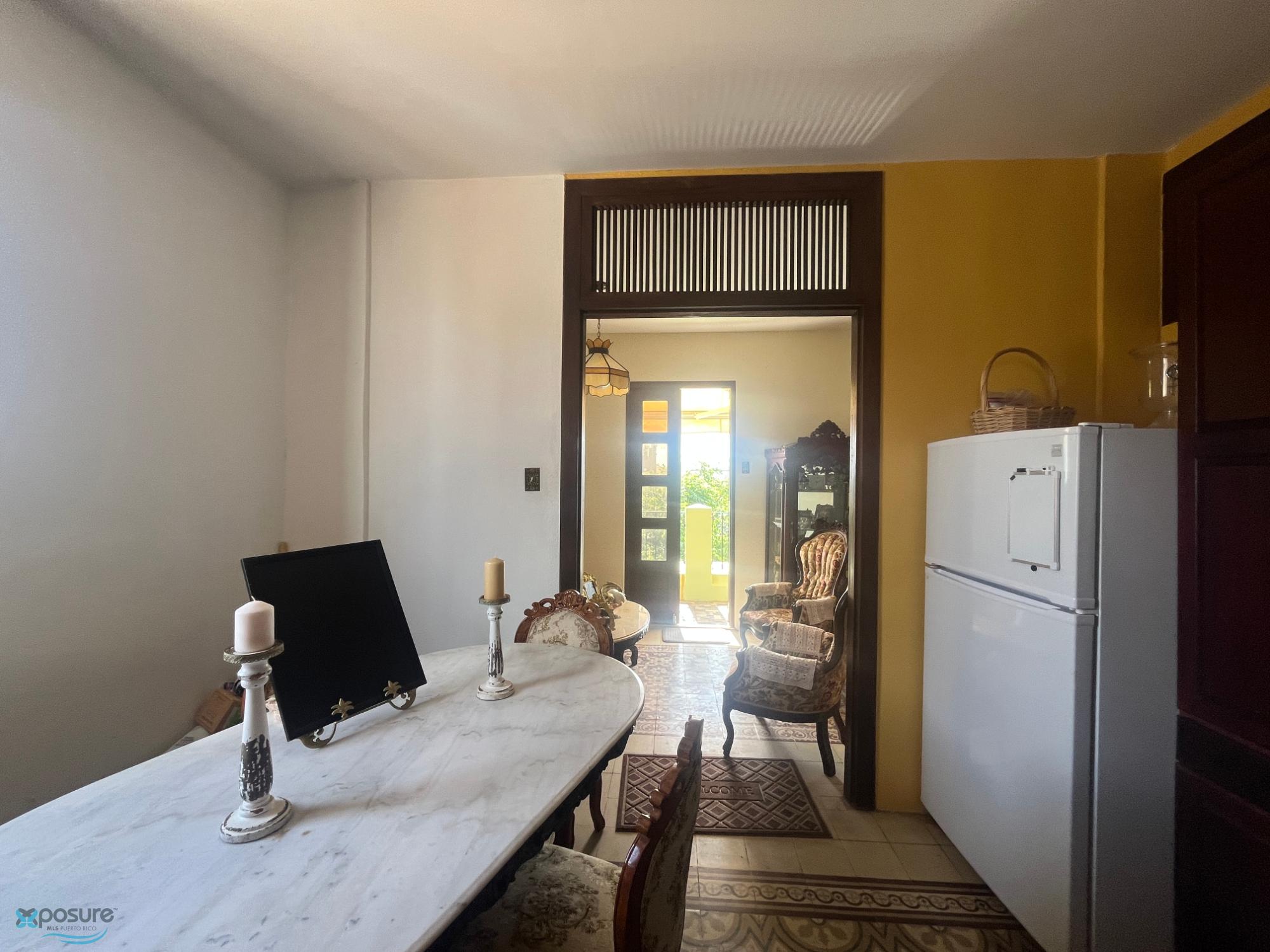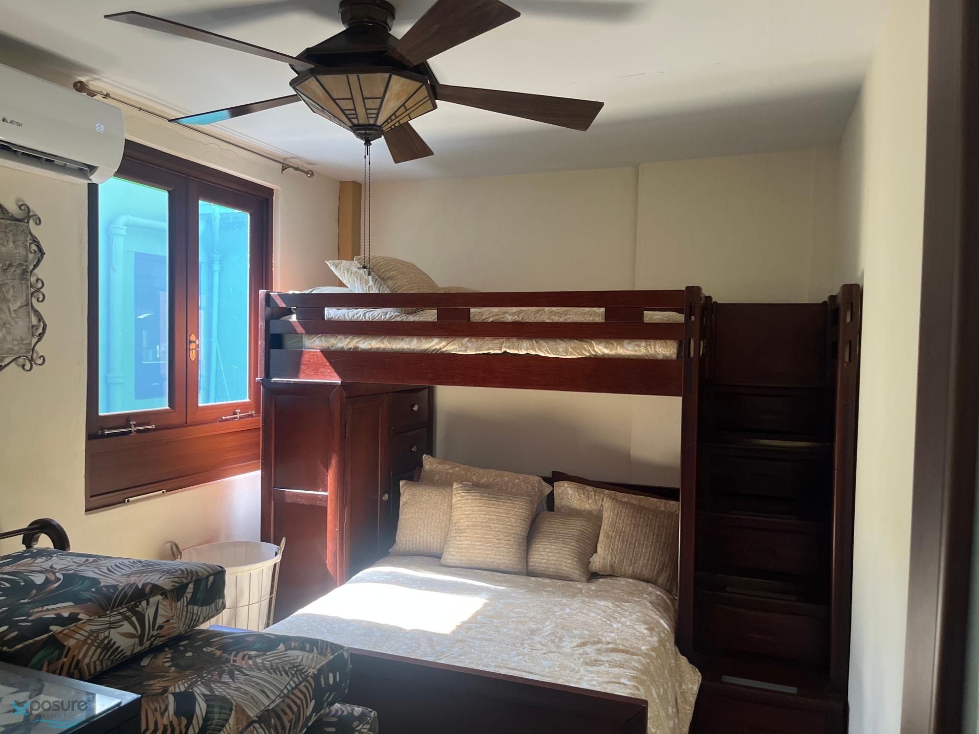Excellent, fully renovated and equipped penthouse apartment, distributed over two levels and located on one of the most emblematic streets of Old San Juan. The property offers a charming combination of historic style with modern finishes. It features: 2 bedrooms, 1 bathroom, living and dining room furnished with elegant rustic furniture, kitchen with granite countertops and appliances included, and a penthouse with two terraces, the main one being a beautiful space equipped with outdoor furniture and a jacuzzi, ideal for relaxing or enjoying spectacular sunsets. HOA: $100. The price includes: all appliances, air conditioners, water heater, stove, refrigerator, microwave, beds, bunk beds, and ceiling fans. Ideal for short-term rentals. Pets are welcome!..