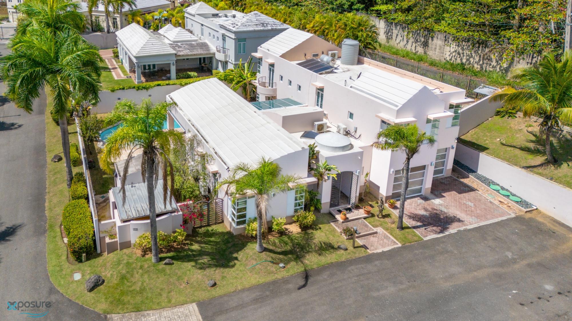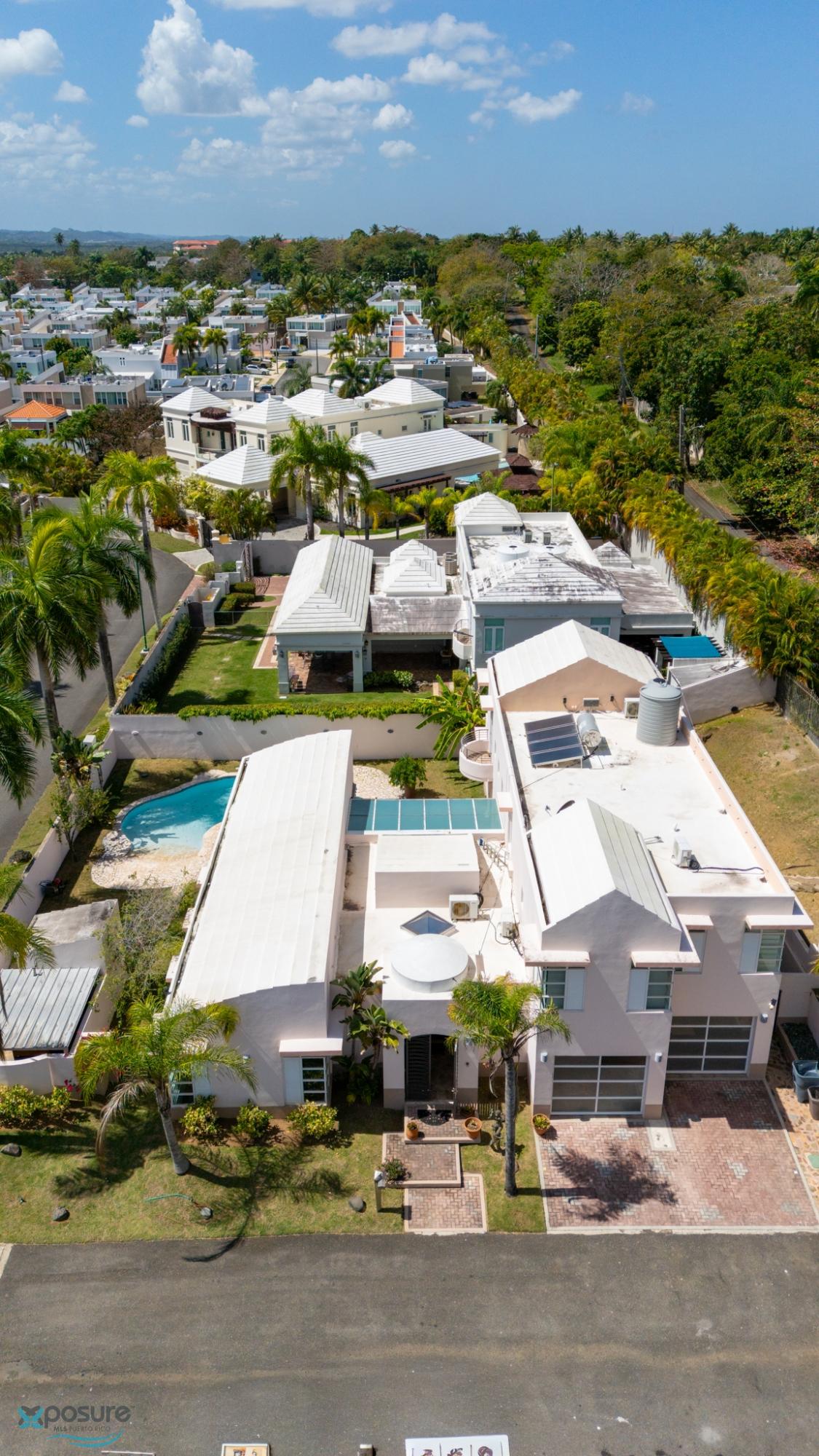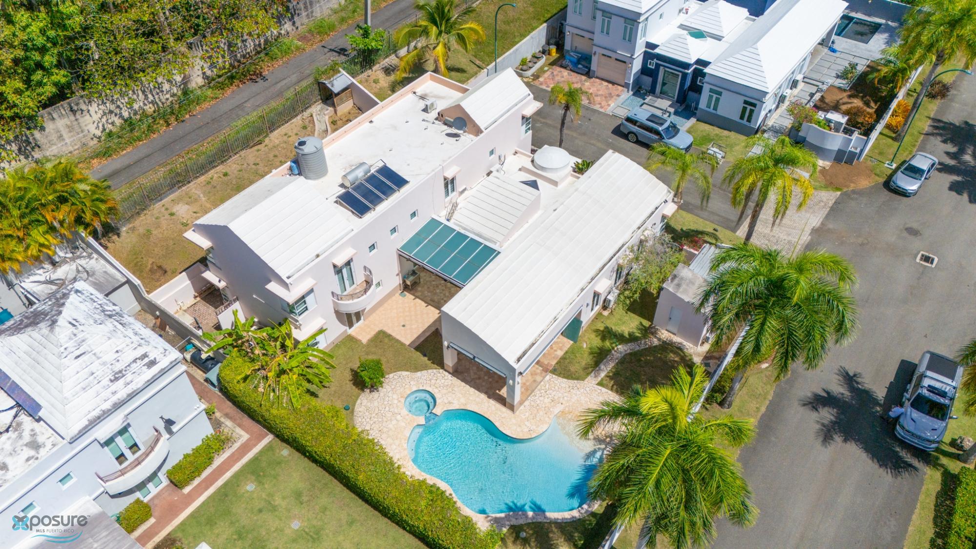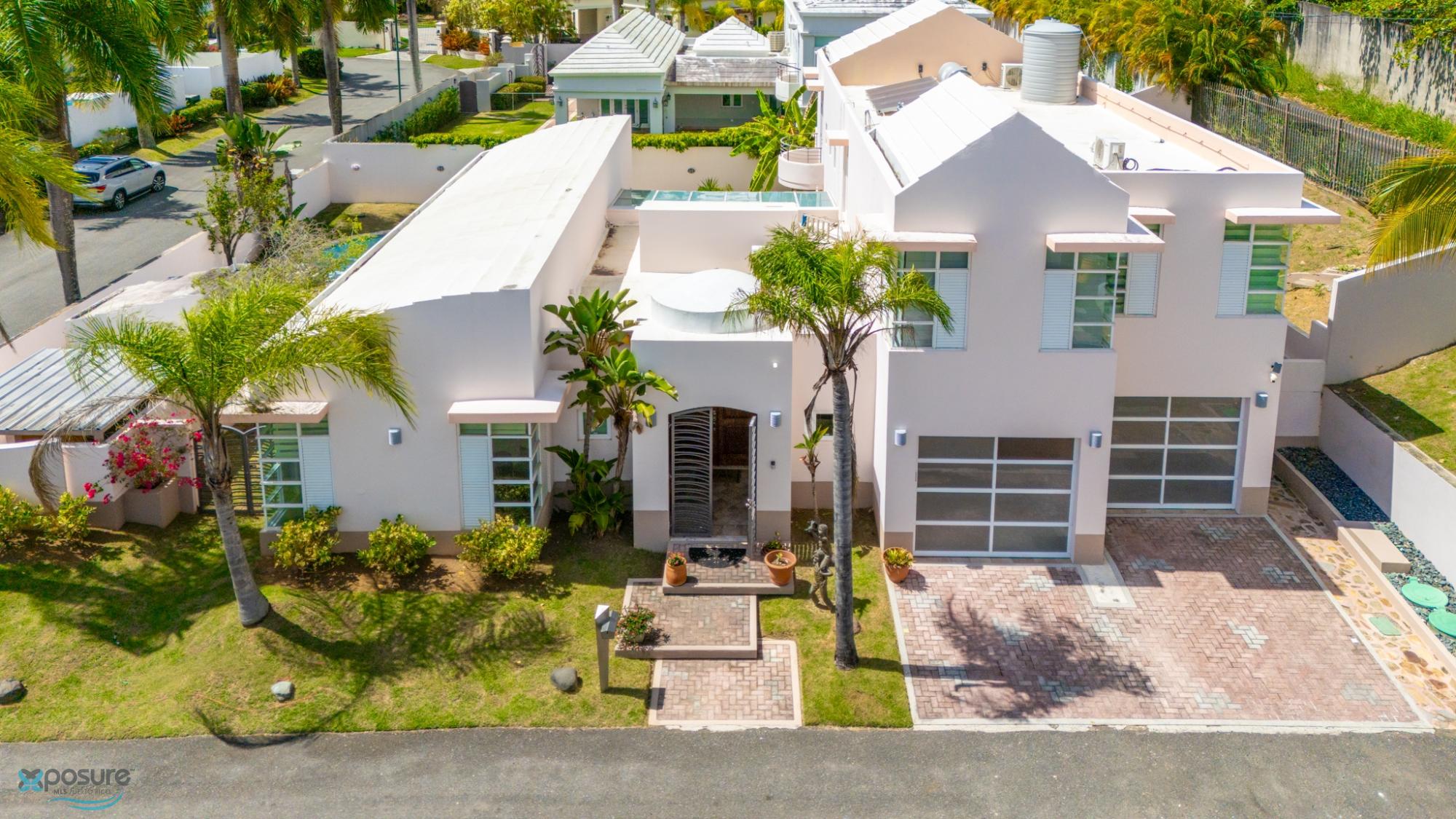 Welcome to this fabulous, Mediterranean Style 2-story home located by a prívate street in the Paseo Las Palmas residential neighborhood. This exclusive community, with only 38 houses, is nestled in the heart of Dorado and offers various amenities including: basketball and tennis courts, a swimming pool, and a club house. The double gated residence is located adjacent to the Dorado Beach East and Ritz Carlton communities. The property boasts approximately 3,500 sq.ft. with exquisite details,high architectural cielings ,italian stone tile flooring, a cozy backyard with a Beach Style pool and 2 covered terraces. It counts with 4 bedrooms, 4.5 bathrooms, 2 masters suits. Beautifully wood crafted walk-in closets in all bedrooms. Multiple storages. Family, formal and dining rooms. Vibrant stained glass piece of art in the entrance foyer .Fully equipped kitchen with SS Monogram Appliances. Power generator, water tank, water heater. Next to beaches, hospitals, bilingual schools, supermarkets, restaurants, banks, pharmacies and more.Only 35 miles from SJU International Airport..