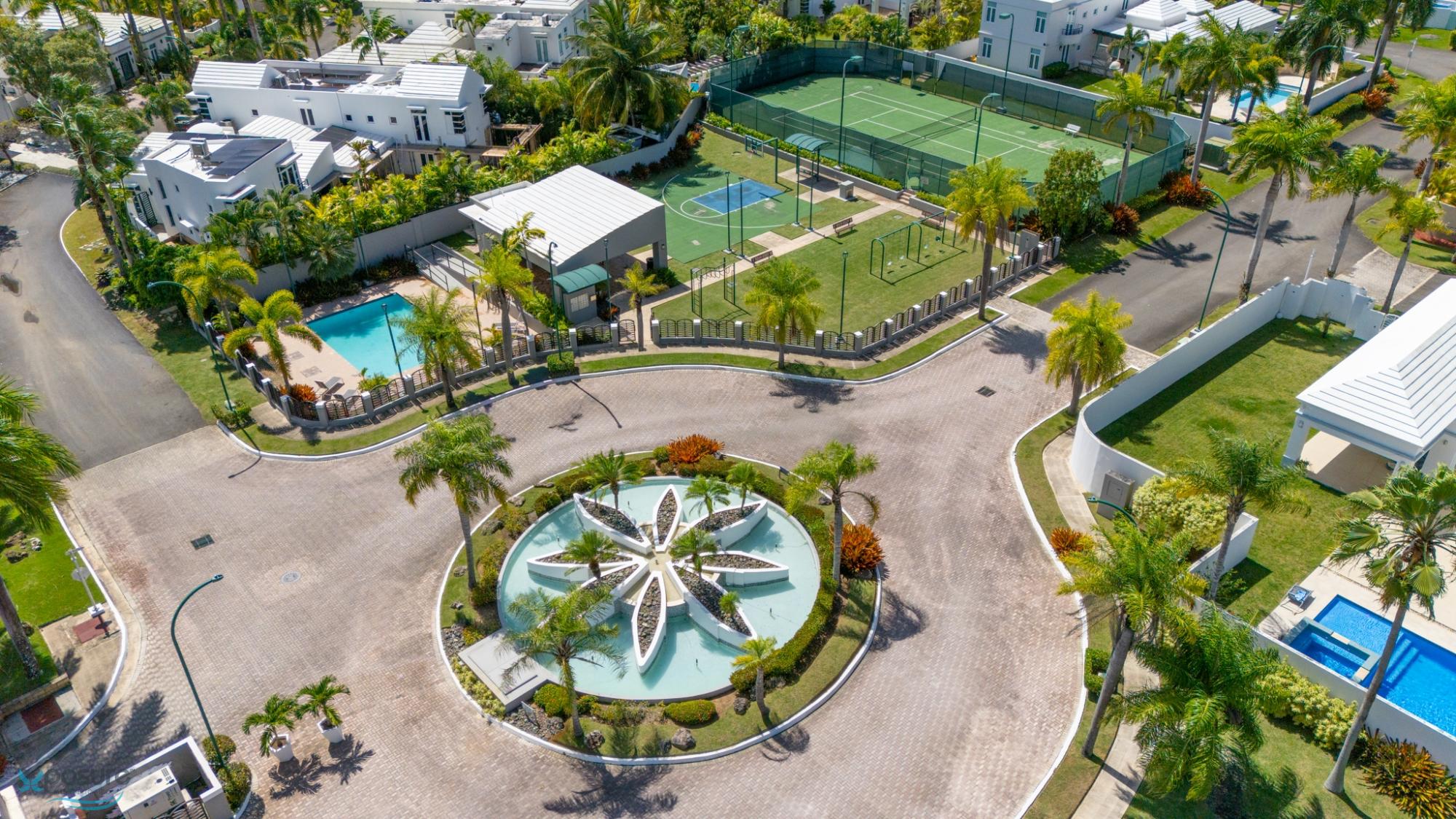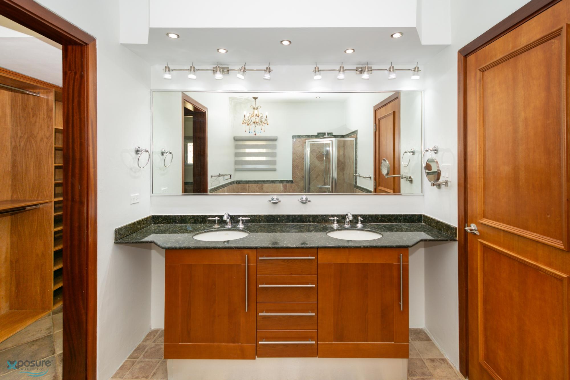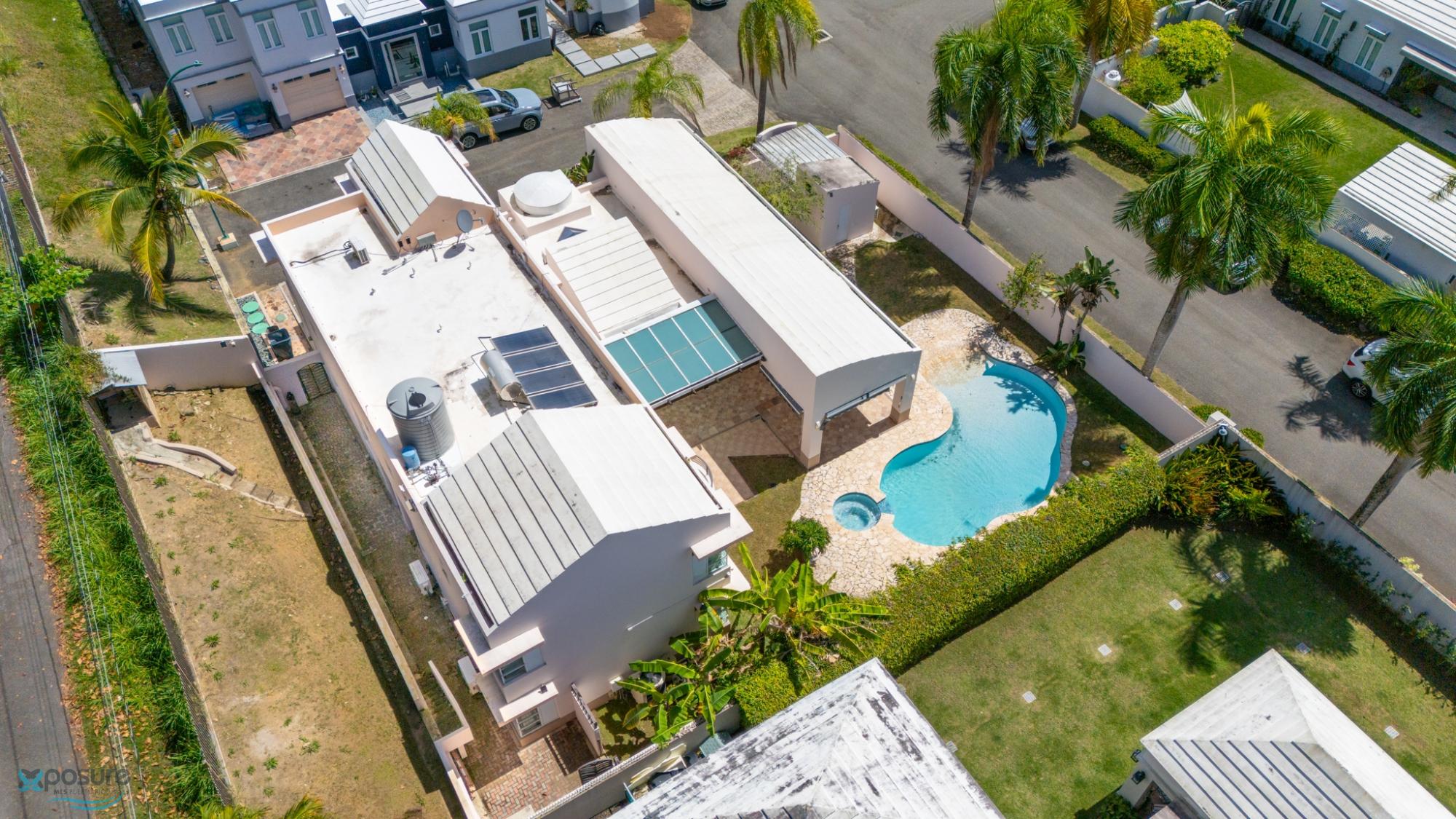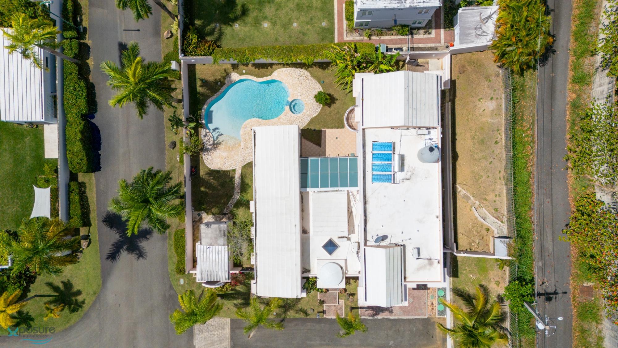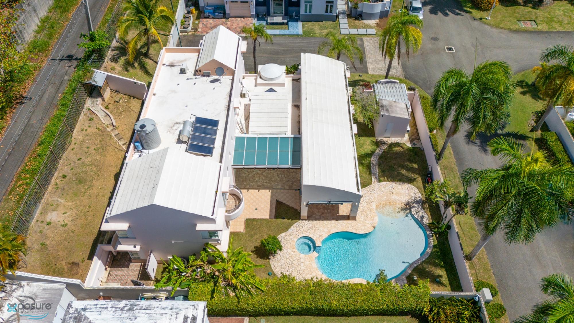 Welcome to this fabulous, Mediterranean Style 2-story home located by a prívate street in the Paseo Las Palmas residential neighborhood. This exclusive community, with only 38 houses, is nestled in the heart of Dorado and offers various amenities including: basketball and tennis courts, a swimming pool, and a club house. The double gated residence is located adjacent to the Dorado Beach East and Ritz Carlton communities. The property boasts approximately 3,500 sq.ft. with exquisite details,high architectural cielings ,italian stone tile flooring, a cozy backyard with a Beach Style pool and 2 covered terraces. It counts with 4 bedrooms, 4.5 bathrooms, 2 masters suits. Beautifully wood crafted walk-in closets in all bedrooms. Multiple storages. Family, formal and dining rooms. Vibrant stained glass piece of art in the entrance foyer .Fully equipped kitchen with SS Monogram Appliances. Power generator, water tank, water heater. Next to beaches, hospitals, bilingual schools, supermarkets, restaurants, banks, pharmacies and more.Only 35 miles from SJU International Airport..
