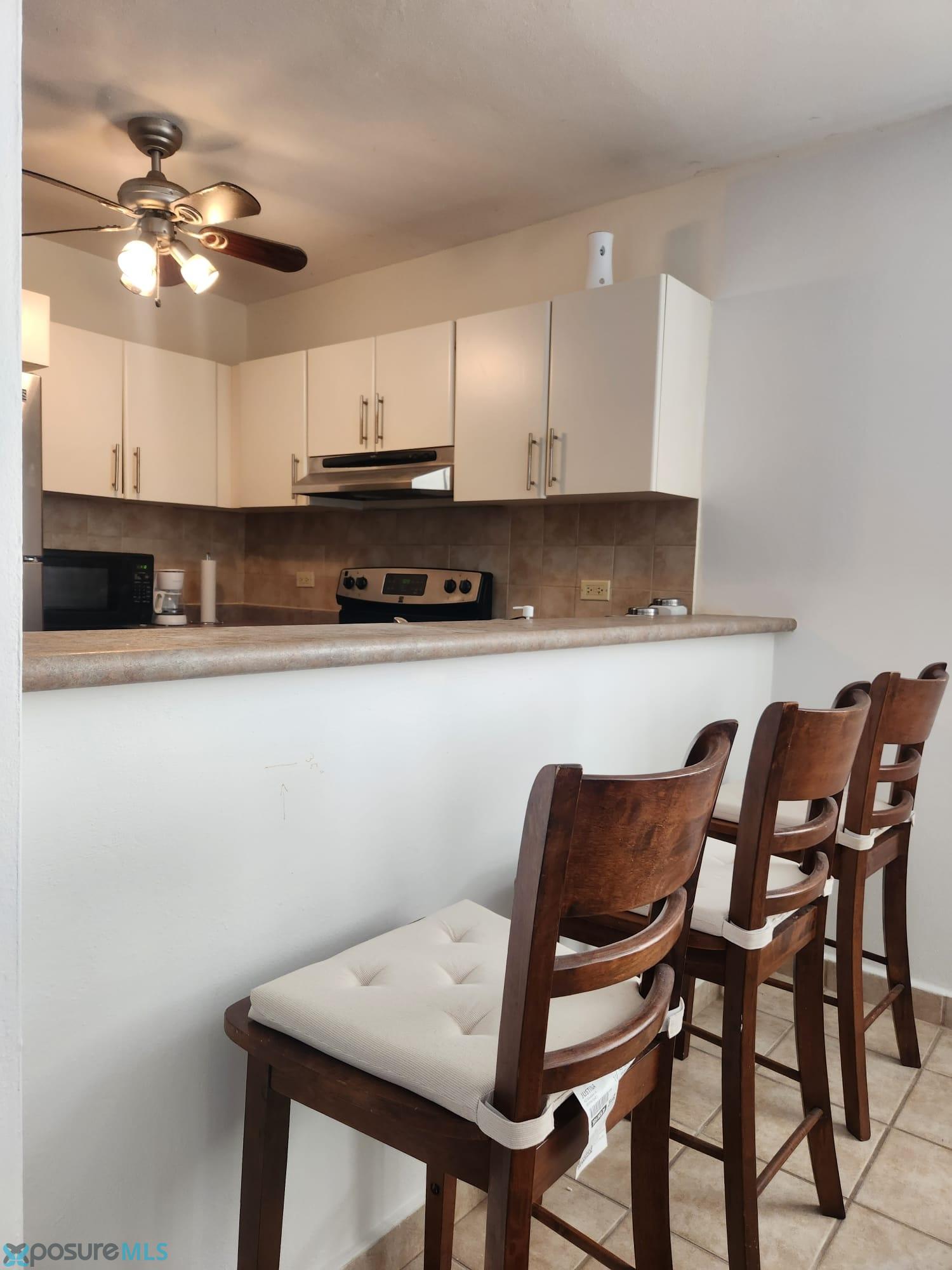 Apartment with: 3 bedrooms, 2 bathrooms, living room, dining room, kitchen, balcony, and laundry room. Fully furnished. Appliances and A/C in all areas. Oceanfront complex with controlled access, 24/7 security guard, basketball and tennis courts, recreational areas, garden, and swimming pool. Close to industries, schools, universities, hospitals, shopping, tourist areas, BQN Airport, two golf courses, and other area attractions..